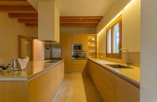 This spacious and modern country house Son Pusa I offering the perfect blend of comfort and relaxation for up to 12 guests. The villa features 4 double bedrooms, 1 quadruple bedroom, 3 bathrooms, and 2 shower rooms, providing ample space for a large group or family. Guests will enjoy modern amenities such as air conditioning, a fireplace, WiFi internet, and satellite TV. The outdoor area boasts a sparkling saltwater pool and a lush garden, ideal for soaking up the Mediterranean sun. Whether you’re lounging by the pool or dining alfresco, the serene surroundings make this property a true oasis. Situated between the charming villages of Búger and Sa Pobla, Son Pusa I offers a peaceful countryside retreat with easy access to nearby shops, restaurants, and local markets. Explore the authentic Mallorcan culture at the weekly markets or enjoy a meal at one of the local eateries. The famous Platja de Muro beach is just a 10-15 minute drive away, where you can enjoy crystal-clear waters and sandy shores. The nearby town of Inca, known for its leather markets and shoe industry, adds another cultural experience for guests to explore. Inside, the villa combines modern luxury with a welcoming atmosphere, featuring elegant and stylish interiors throughout. The fully equipped kitchen and spacious living areas ensure that guests can relax and feel at home. The property is also available for sale, and guests may request a visit during their stay. With all the comforts you could need, Son Pusa I promises an unforgettable stay in the heart of Mallorca. The rental license number is ETV/2453
