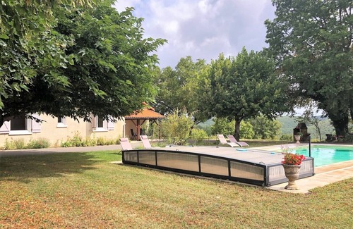 Soniette is a traditional holiday home with a private swimming pool that can be covered so that the water stays super warm when the sun has been shining during the day. Soniette is located in the heart of the Lot / Dordogne and is located on the hills (very calm location) close to the river Dordogne and the nice town of Souillac. You have a beautiful view on several sides of the house. Choose a spot in the garden and enjoy a delicious breakfast with fresh croissants and a baguette, or start the day with a dip in the lovely swimming pool.