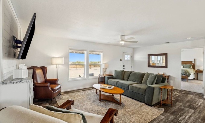 Sitting on 2+ Acres of Sonoran Desert is a sweet home on a private dirt road. Leave city living for a breath of fresh air where you can feel time slow down. Enjoy seeing desert life such as Round-tailed Ground Squirrels, Families of quails, and Antelope Jackrabbit Hares wandering the area. Cactus Forest is located close to St. Anthony Monastery, Starfish Ranch, Charles Whitlow's Rodeo, Windmill Winery, and historic downtown Florence. The home features 4 bedrooms and 2 bathrooms. The front door opens to an open floor plan with a full kitchen, dining table, and living room. A master suite is privately located to the left with a large soaking tub, shower, and walk in closet. Next to the 3 guest rooms is another living area that is perfect for lounging, reading a good book, or pulling down the shades and watching your favorite show or movie on the projector. The 2+ acres of land is fully fenced with open spaces to play and relax. The back yard has a barbecue, a covered patio, and a seating area. Arizona sunsets on the front porch rocking chairs are a must during your stay. You will have access to all areas of the property during your stay except an owners closet. You can message us through the airbnb app with any questions you may have during your stay. You can pull into the gate and park anywhere to the left. There is no firewood provided. There is a telescope that you can take outside to look at the blanket of stars on a clear night. The second living room offers a pullout couch. *Please note the fire pit may be used seasonally as there are Burn Bans in Florence from May 1st to September 30th.