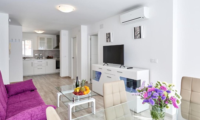 Offering an outdoor pool and sun terrace, Sonrisa Apartments complex of family apartments consisting of 2 buildings is set in Benidorm, 984 feet from sandy Poniente Beach. Free WiFi is provided throughout and private parking is available on site. The pet-friendly accommodations is air-conditioned and is equipped with a flat-screen smart TV. There is also a kitchen, fitted with an oven, a microwave, a washing machine, a coffee machine, a fridge and kitchen utensils. A stovetop and kettle are also featured. The private territory of the complex features a swimming pool, a sun terrace, a rest area and place for barbecue, an underground parking garage. Property offers a transfer from/to the airport, train station, ferry station. The staff can assist in choosing a guided tour, including tickets and special offers for various activities on the Costa Blanca and more. All infrastructure, including cafes, restaurants, shops, a supermarket, pharmacies, banks are located within a walking distance. The nearest airport is Alicante Airport, 27 mi from Sonrisa Apartments.