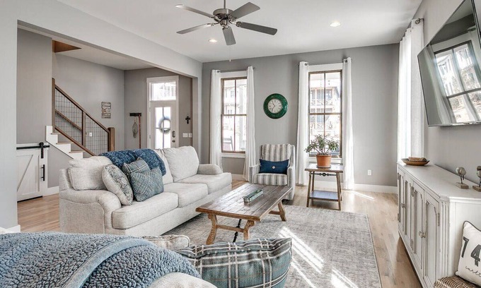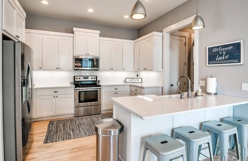 BearFeet Retreat boasts an inviting open floor plan that includes a fully stocked kitchen, dining area, and cozy living room, all designed to keep your loved ones connected during your stay. The home features a queen master suite with an ensuite bathroom, as well as additional bedrooms to accommodate more guests comfortably. Enjoy outdoor entertaining on the large porch or by the fire pit, adorned with twinkle lights that add a romantic ambiance for evening gatherings. You can also take advantage of our exclusive "Bear Necessities" package available from October through April, which includes complimentary firewood, a S'Mores kit, and a gift card to a local eatery—perfect for your wedding weekend celebration.