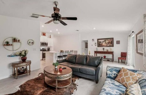 Make yourself at home in this 3-bedroom Port Charlotte retreat. This amazing house features 3 queen beds, 2 bathrooms with a bathtub and walk in shower, Open concept living/kitchen/dining room, living room with 2 sofa couches, house with everything you need to enjoy your Florida vacation. Big unfenced) backyard, parking for motor home or boat and couple cars. Guests can enjoy the serene surroundings and modern amenities like heating, AC, and a hairdryer. Close to shopping, dining, golfing, and beaches. We hope you'll enjoy your stay at our house.