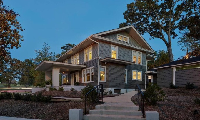 This is a rather a cool redo of one of the most modern homes of its time. Powell House, a 1913 American Prairie-style home, has been restored and updated by one of Little Rock's foremost designers, receiving the Quapaw Quarter Association's 2019 Award of Merit. The location between hip Hilllcrest and downtown is perfect for business and pleasure. Close to the State Capitol and medical centers, we have special rates for rentals over 1 week.