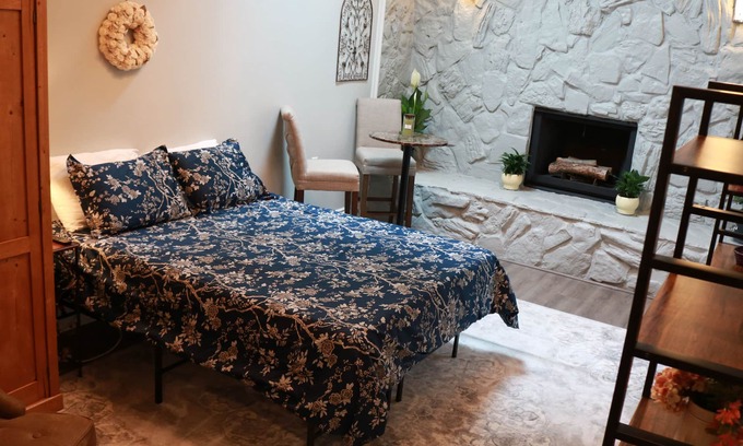 Nestled in a tree-lined oasis just moments from bustling Murfreesboro & near to Nashville, this gorgeous studio features private outside entrance, vaulted ceilings, greystone fireplace & hearth, smartTV, wi-fi, workspace, & bistro table under the skylight! Kitchenette has new mini-frig w/separate freezer section, microwave, Keurig, dishes. Private thermostat & key to private new bathroom (across shared hallway) w/ new granite & custom tile shower. Pickup laundry & concierge svcs available.