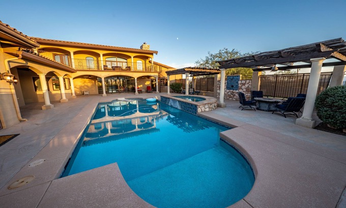 You will absolutely love staying in this spacious 5 bedroom, 4.5 bath home on a vineyard in Cornville, Arizona. Fall head over heels with an open floor plan and comfortable furniture that the whole family will love. There is a spectacular living room with plentiful amounts of light coming in from the towering ceilings, perfect for family gatherings after your day adventures. You will not believe the majestic 360° views right outside every window.