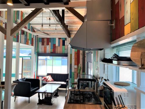 Sotoura Beach House Shimoda - Less thank 1 min walk to Sotoura Beach! offers accommodations in Shimoda, a 2-minute walk from Sotoura Beach and 28 miles from Koibito Misaki Cape. This property offers access to a terrace, free private parking, and free Wifi. Outdoor seating is also available at the vacation home. The air-conditioned vacation home consists of 4 bedrooms, 2 living rooms, a fully equipped kitchen with an oven and a coffee machine, and 1 bathroom with a bath and a hair dryer. A flat-screen TV with streaming services is provided. For added privacy, the accommodation has a private entrance and soundproofing. During warmer months, you can make use of the barbecue facilities and eat on the private patio. Guests at Sotoura Beach House Shimoda - Less thank 1 min walk to Sotoura Beach! will be able to enjoy activities in and around Shimoda, like snorkeling, windsurfing, and cycling. If you'd like to discover the area, fishing, hiking, and walking tours are possible in the surroundings. Shuzen-ji Temple is 30 miles from the accommodation, while Monument to Perry's Landing is 2.6 miles away.