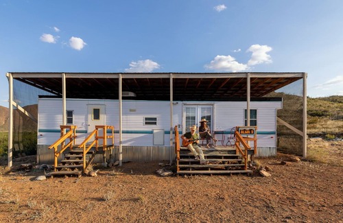 ALMA Ranch is a unique property, located on Terlingua Ranch, just 4 miles from Terlingua Ranch Lodge, The Bad Rabbitt Cafe and pool. This trailer is beyond comfortable and has all the comforts of home, with electricity, AC/heat and a septic system (which means flushable toilets). The kitchen is fully stocked, including a full size refridgerator, stove, microwave and coffee maker. We provide some drinking water to ger you started and coffee. It is nestled in the mountains and provides view as far as the eye can see. The night sky is amazing. Stars forever.