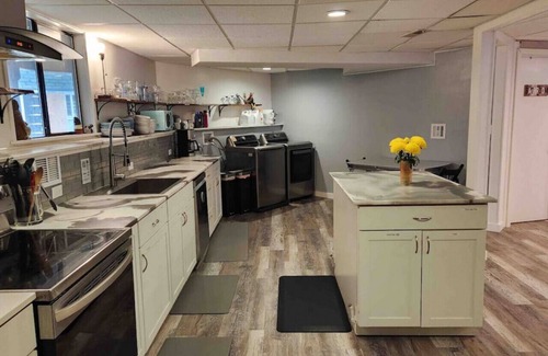 In the bottom half-basement level of the Geodesic Dome Home you will find our community lounge space. This space is open for guests and community members to relax, connect and recharge. You can play games, charge your phone, read a book or play some instruments. Here is also where you will find the shared bathroom and kitchen. Please note: Quiet hours in this space are 10pm-8am.