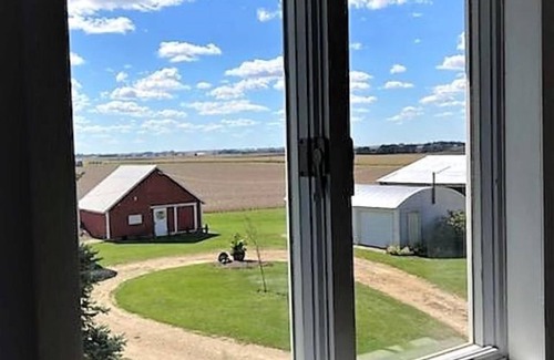 We're an old Iowa country farmhouse decorated in chic vintage style. Wake up to the peaceful sounds of birds and good old Iowa sunshine. During your stay, enjoy the view of farmers working in the fields and learn where the food on your table comes from. This is the perfect place for a group of you and your friends to get together and enjoy a bottle of wine and share memories.