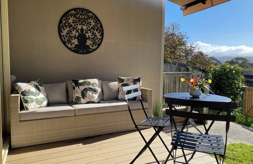 A beautiful couples retreat full of soul! Small with great amenities, full kitchen with marble bench tops and DeLonghi coffee machine. Ocean views from bedroom and living room deck. Handy car port at front door. Lounge room with day bed for cozy rainy days and a good movie!