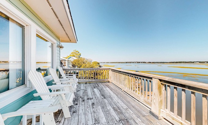 Make yourself at home at this lovely three-story home that overlooks the beautiful Topsail Sound Intracoastal waterway! When you are ready to swim, walk on the beach, work on your shell collection, or just lay in the sun, all you have to do is walk across the street to a private boardwalk over the dunes. If you want to try your skills at paddleboarding, behind the house is a perfect spot. Downtown Surf City is two and a half miles away with plenty of restaurants and shopping. Other great attractions nearby include Kenneth D. Batts Family Park, Surf City Ocean Pier, Soundside Park, Historical Society Of Topsail Island, Hampstead Kiwanis Park, and North Shore Golf Course.