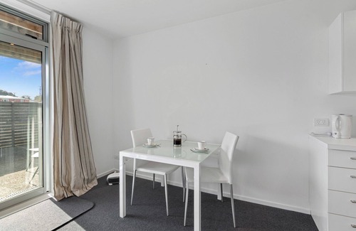 Comprised of neutral colours and fresh furnishings, this ground floor unit will ensure a restful and relaxing stay. A kitchenette, dining set and couch make up your living space, while this studio-style accommodation flows through to your bedroom nook providing a queen-size bed. A stylish ensuite completes this convenient set-up.