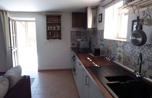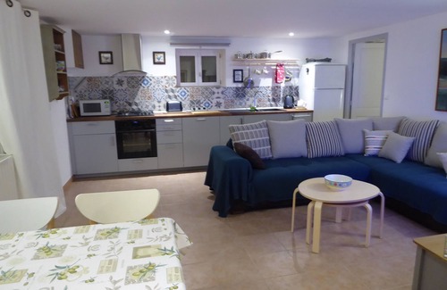The living area is open plan with a well equipped kitchen and there are sitting and dining areas. The property has a high speed fibre connection and there is Internet access via WiFi in the apartment, pergola area and around the swimming pool area.