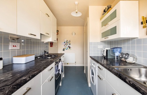 Welcome to the top floor of this vibrant artist's home! As you ascend the three sets of stairs, you will be greeted by a plethora of fascinating artworks from around the world. Located just across the road from the Beaconfield art gallery and cafe, and only a few minutes' walk from Damien Hirst's Newport Street Gallery, this space is truly a creative oasis.