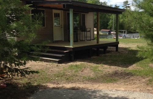 cottage is fully furnished, includes row boat, use of kayaks, paddle boat, motor available to rent, pontoon boats for rent, there's over 150 ft. of private frontage, small swim area, private dock just outside the door to park your boat views from cottage are beautiful, covered porch, picnic table, fire ring,