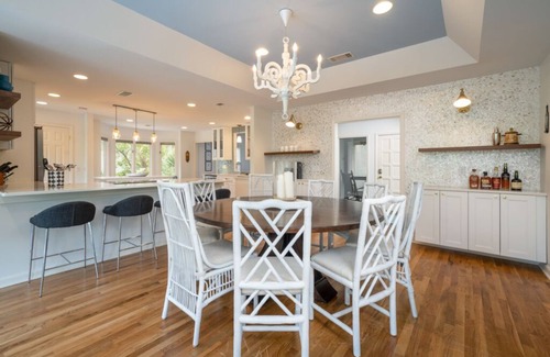 This idyllic property is perfectly situated within Sea Pines, just a short 300-yard stroll to the beach and a quick bike ride to the vibrant Harbour Town. You can easily indulge in local cuisine at the nearby Salty Dog Cafe, or explore the picturesque marina. With convenient access to scenic paths and recreational activities, your wedding guests will have plenty to enjoy before and after your festivities. Make South Beach: Steps to BEACH! Pool your wedding destination for an unforgettable experience filled with love, laughter, and the beauty of Hilton Head Island.