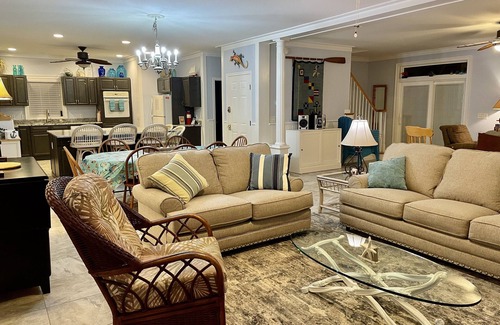 Step right onto the sand from this beautiful beach home. If fishing is your thing, cast your line into the water and fresh fish are yours for breakfast or dinner, fishing license required.