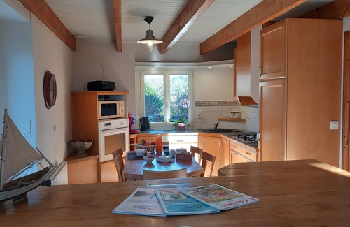 South Brittany, 'longère' in the countryside is located in Pluvigner. South Brittany, 'longère' in the countryside provides accommodation, featuring Ocean View, Child Friendly, Balcony/Terrace, among other amenities. This House features Ocean View, Child Friendly, Balcony/Terrace, to make your stay a comfortable one.