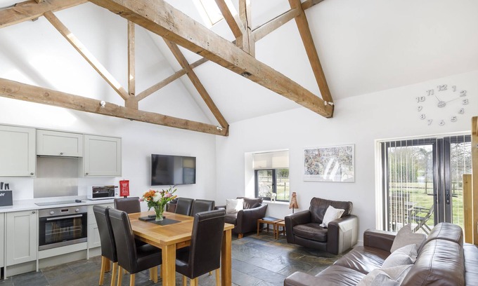 Open the front door of the cottage and take in the gorgeous open-plan ground floor. The beautiful exposed beam ceiling and great views over the countryside make this the perfect place to get together and catch up amid stunning surroundings, or simply sit back, relax and enjoy some quiet time.