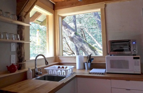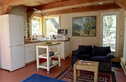 If you treasure natural beauty and tranquility then this might be the spot for you! The very private cottage is separate from the main house, and they are located on 3+ acres of a forested and moss-covered meadow. Sunlight abounds and views from your picture windows are mesmerizing.