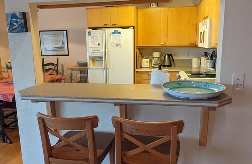 This is a perfect getaway for 2 couples or a small family. We have 2 bedrooms that each have a queen bed and also 2 twin mattresses that you are welcome to use for children. The master suite on the top floor has a private bath with a shower/tub combo and a balcony that overlooks the water, mountains and incredible sunsets. On the main floor the 2nd bedroom, also with a queen bed, has sliding doors out to the beach side deck.