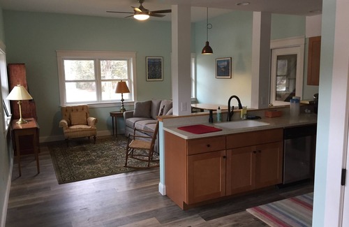 Recently constructed Guesthouse located about 250 feet from Lake Champlain. Lakeshore patio and dock provide easy access to the broad lake. Guesthouse is located on a quiet rural road which is one of the main scenic bicycle routes through the Champlain Islands.