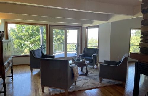Guests have access to the entire home, five acres, and a private road for walking. The large driveway has room for parking four or more cars. An all-wheel-drive vehicle is necessary during seasonal weather. Expect occasional mud during rain or after a thaw. Fall and winter bring breezy weather and snowfall. In extreme icy conditions, chains may be needed. The private road and private driveway are plowed when there is snow.