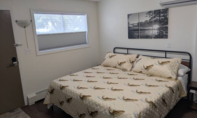 Nestled amidst nature yet mere steps from daily conveniences: enjoy walking distance to local restaurants, a lively bowling alley, a conveniently located grocery store, scenic ball fields, and a serene Connecticut River boat launch. Outdoor lovers will love the direct access to ATV and snowmobile trails right from the parking lot. Indoors, unwind with a luxurious king-size bed, a spacious 50-inch TV, and a fully equipped kitchen with everything you need for comfort, convenience, and relaxation.