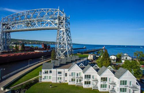 Situated between Lake Superior and Duluth Harbor Basin, this waterfront hotel is nestled at the foot of the Duluth Aerial Lift Bridge. Free Wi-Fi and a flat-screen TV are provided in every guest room. All waterfront suites at South Pier Inn have private balconies, which provide the opportunity for our guests to look eye-to-eye with ships captains, as international vessels enter the harbor under the Aerial Lift Bridge. A refrigerator and tea and coffee-making amenities are also provided in each room. Guests can enjoy a walk or enjoy a sunset from the private 400 foot shoreline path at South Pier Inn. A complimentary continental breakfast is served each morning. Duluth Entertainment Convention Center, located across the harbor, is less than one mile away. Duluth city center, Great Lakes Aquarium and Bayfront Festival Park are a 5 minute drive from this hotel.