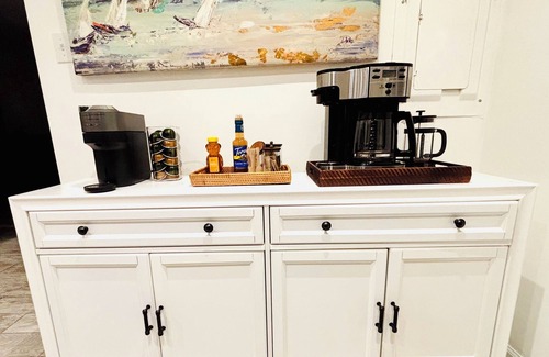 Elderly Family- First floor bedroom with first floor full bath- no stairs. Have kids?- we can provide anything you might need while away from home. First floor bedroom has a queen bed. A full bath and powder room on first floor. Laundry located on the first floor. No stairs to access first floor. Second floor: 2 bedrooms. One room has a queen bed and twin bed with newly renovated en-suite. Primary Master bedroom has a king suite, newly renovated master bathroom attached to a private deck.