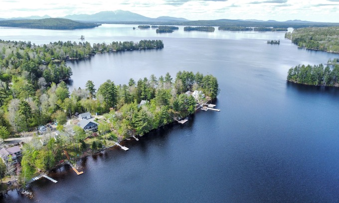 - Beachfront Cottage on Ambajejus Lake With Sandy Beach and a Mountain View