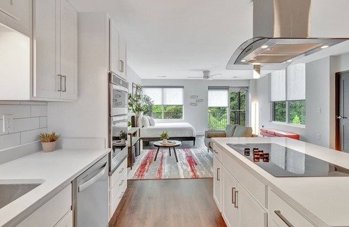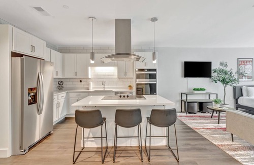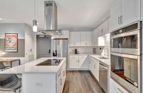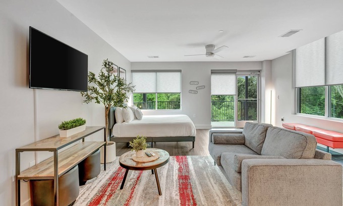 Welcome to The Lodge Y'all! This studio unit immerses guests in the southern slang of Nashville. Your unit will be filled with fun art, a full kitchen with top of the line appliances, and smart TV. We've created the darn cutest home-away-from-home experience at the Lodge, with premium amenities including a fitness center and steam room.