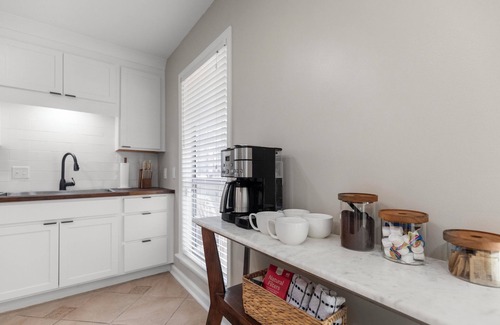 Our kitchen is fully stocked with pots, pans, Instapot, cooking utensils and spices. We provides the essentials to get you started (towels, paper products, detergent, coffee, creamer, etc.). If you'll be with us for more than a few days, we are conveniently located near shopping where you can resupply.