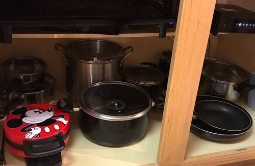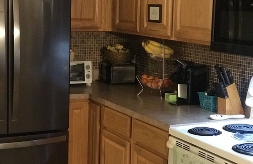 Our Kitchen is well equipped with everything you will need: Dishwasher; Microwave; Garbage Disposal; Coffee Maker; Electric Tea Pot; Slow Cooker/Crock Pot; 4-Slice Toaster; Blender; Utensils and Pots and Pans. Both plastic and stoneware dishes are available as well as glass and plastic drinkware. We use the plastic dishware on the Lanai!