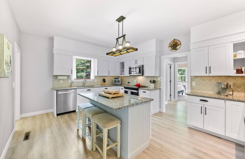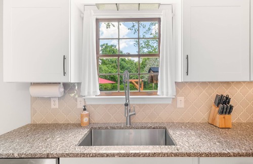 Make coffee "Your way" whether it's a Keurig or a pour-over, you're covered. Watch movies on MAX or Amazon Video. Amazon Alexa is also provided to set alarms and listen to music in each room. Just say "Alexa" and then ask it to perform a task like setting an alarm for tomorrow morning at 7. Sonos music speakers in the kitchen and sunroom for listening to music. Just say "Hey Sonos" and then ask to play your favorite music. If you like regulation-size Pong or Darts, we have you covered. Our regulation-size Cornhole set is real family fun! All this and more in the 3000 sq. ft. Southern Comfort vacation destination. Your Southern Comfort home has been extensively remodeled for convenience, but is an older home. We have intentionally left some of the older charm and uniqueness to keep an old-fashioned feel. Single pane wood windows and shutters, built-in closet storage, chair railing, built-in hamper and ironing board, crown molding, and high ceilings. Enjoy some of the abstract art throughout the home. We hope to provide you with comfort and value during your stay.
