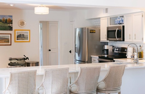 Unwind at this gorgeous Louisville home filled with comfort and amenities. This spacious house was loving remodeled with high-end finishes and original artwork for an experience of casual elegance. Although downtown is only ten minutes away, the area is peaceful with mature trees and privacy. The house is located in the East End of Louisville, a locals-only spot with great shopping and dining. Our neighborhood is ideal for a nice evening walk and the large deck is perfect for relaxing with wine.
