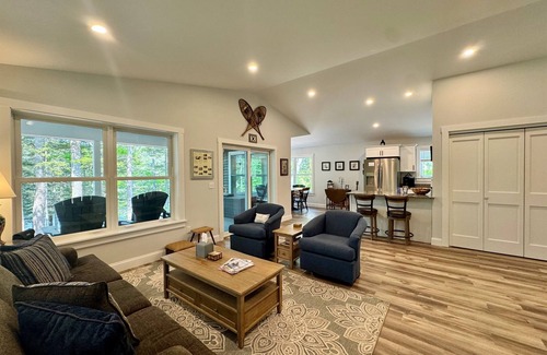Welcome to Southern Cross! This brand-new, waterfront cottage was built in 2023 and features loads of modern conveniences, beautiful water views, a private dock, kayaks and AC. Located in a small cabin community of about 34 homes nestled amongst the pines, Southern Cross feels miles away from the hustle and bustle, but is only 2 miles from downtown Boothbay Harbor. The community also offers a shared beach on a small lake, a community dock on the bay and is a short walk to a network of some of thhe areas best hiking trails. Come experience the best of Maine!