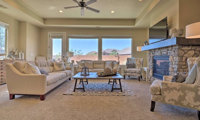 Welcome to Southern Escape, a stunning wedding accommodation nestled within the picturesque Coral Ridge development in Washington, Utah. This property is an ideal choice for couples looking to celebrate their special day in a serene and beautiful setting. With its spacious layout that sleeps up to eight guests, you and your loved ones can enjoy an intimate retreat while planning your dream wedding. The charm of the nearby Coral Canyon Golf Course adds a unique backdrop for both ceremonies and photo opportunities alike.