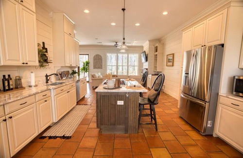 Welcome to your Stunning Modern Farmhouse Retreat! Escape to a breathtaking 4-bedroom, 4-full bath modern farmhouse nestled in serene countryside. Perfectly blending rustic charm with contemporary elegance, our stylish retreat offers an unforgettable getaway for families, friends, and groups. Each of the 4 thoughtfully appointed bedrooms ensures comfort, with 3 boasting private on-suite baths. With sleeping arrangements for up to 8 guests, unwind in comfort after a day of exploration.