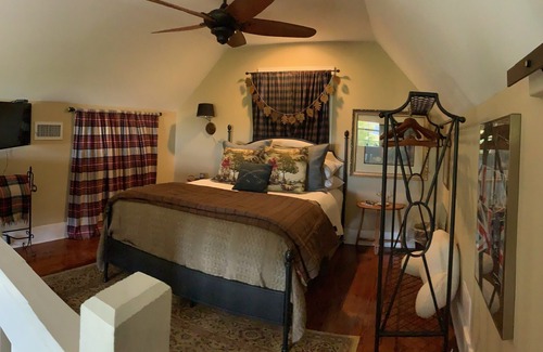 We welcome you to enjoy the Carriage House at The Waters. The Carriage House has a private entrance and is part of a grand Southern-style home on Lake Cameron. You can comfortably sleep four in a private and luxurious setting. The Carriage House has a fully equipped kitchen, a loft, a cozy bunk room, central heat and air, washer/dryer, three flat-screen TV's, wood floors, ship-lap siding, and ceiling fans are in every room, making it a wonderful place to spend a weekend, week or month.