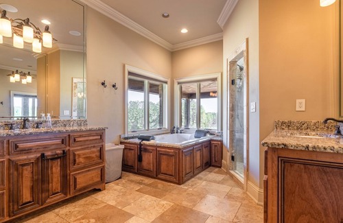 This spacious and inviting one-level retreat spans an impressive 5,418 square feet, offering ample room for relaxation and enjoyment. As you step inside, you’ll be greeted by the warmth of this custom-designed residence.