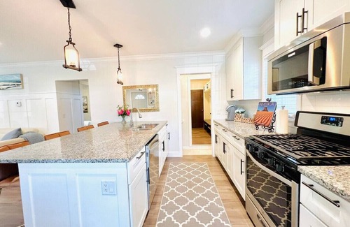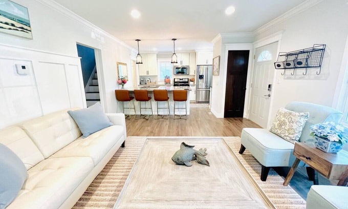 Walking into Minne-GetAway's Southie Paradise, you will genuinely be amazed at the high end finishes, thoughtfully designed layout, and ambiance created through out the home with the zen-like color palette. Unique textures like the concrete fireplace with ship lap accents and tall beadboard paneling will draw your eye to the details that abound throughout this home. Custom tiled baths, stone countertops, and separate bedrooms on each floor make this home unique for your travel needs.