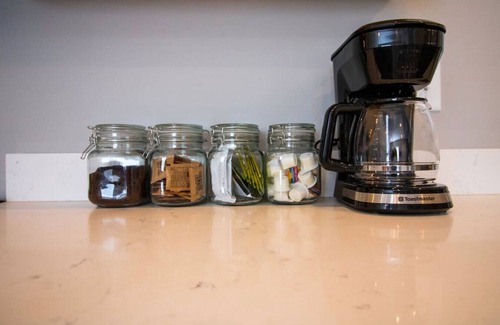 After a day exploring the city, or enjoying a hike at one of many trails offered, you can cozy up in the living room or dining area. The modern kitchen is fully-equipped with everything you’ll need to cook a family meal or have cocktail hour. When you're ready to lay your head down for the night, two bedrooms on the second and third floors offer comfy bedding, sitting areas, walk in closets, en suite bathrooms, and each bedroom has its own balcony. The sofa in the living room also pulls out to a queen-sized bed for an additional sleeping space.