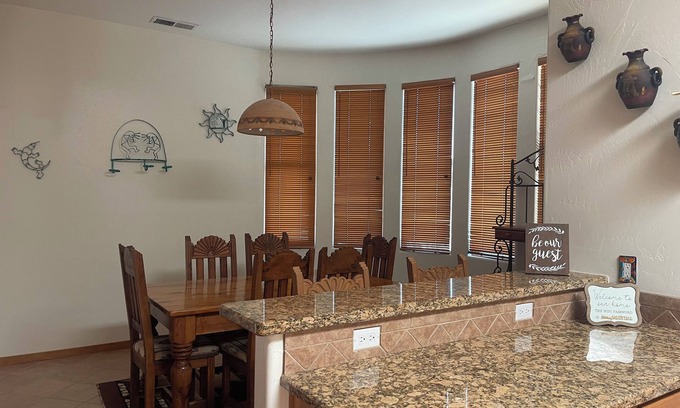 Southwest Cozy 3-bedroom house in charming Rio Rancho with AC, WiFi has 3 Bedrooms , 2 Bathrooms, and max occupancy of 7 people. The minimum rental for this property is 1 nights, but this can change depending on the season you plan on staying. Previous guests have given good rated it, and VRBO labeled it a top-rated House because of the excellent services rendered by the owner or manager of this House, and has consistently provided great experiences for their guests. Most families or guests that use it recommend it to their friends and some of them are repeat guests. House has a friendly neighborhood, and the Rio Rancho has interesting places to visit. If you want to learn more about the House in Rio Rancho, such as places to visit and things to do nearby, you can check below to learn more.