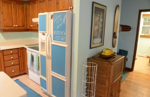 The fresh & fun décor in this 1000sq foot cottage will instantly put you in a holiday mood. It has an open concept kitchen and living area in a single story space with a beautiful large deck overlooking the river. The large sundeck is a great space for entertaining with ample seating for your family and guests. Enjoy the south west exposure entertaining, relaxing with a book, taking in the sun, all while feeling the cool breeze off the water.