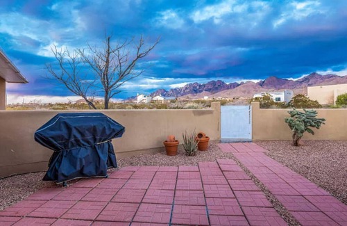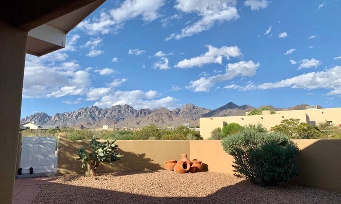Our comfy beautiful home has 3 bedrooms and 2 baths, and can sleep up to 8 including the sleeper sofa in the living room. The hand-crafted dining table seats 6 and there is additional seating on 3 bar stools at the kitchen island. The home is nestled in the Organ Mountains outside of Las Cruces, NM. You will be stunned anew every morning when you wake up to the incredible mountain views, and then stay up late to watch the stars from one of the outdoor porch seating areas. If it's nice outside enjoy using our outdoor grill (additional charge; see notes), and if it's chilly relax inside in front of the gas fireplace. You'll be surrounded by nature and so close to so many parks and hiking trails, while also being a short drive from Las Cruces to experience delicious southwestern food and culture. Take a break from hectic life and take a deep breath of desert mountain air!