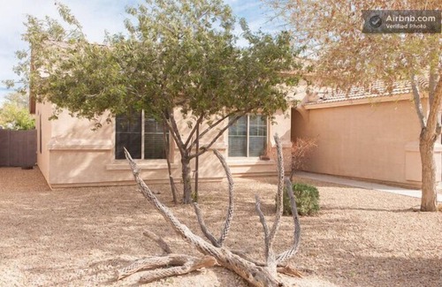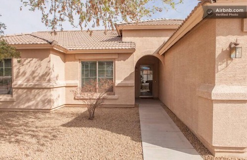 Beautifully decorated southwest style home in the growing Phoenix suburb of San Tan Valley. Four bedrooms/ 2 bathrooms accommodates up to 8 adults. Heated pool* with waterfall and palm trees completes your little slice of heaven. Close to golfing, hiking, shopping, and more!