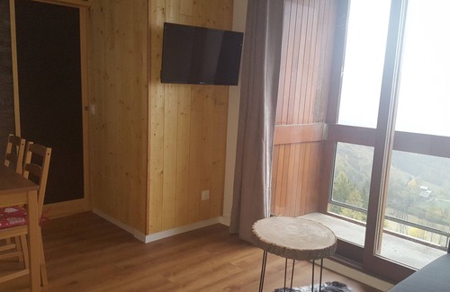 - Organized living room with dining area, convertible sofa (140), TV and balcony with panoramic views
