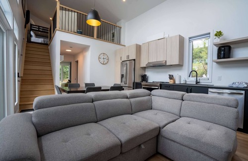 Escape to our brand-new, contemporary chalet nestled in the heart of the mountains, where comfort meets modern amenities for the perfect getaway. This bright and airy retreat offers breathtaking panoramic views, ideal for relaxing in nature.