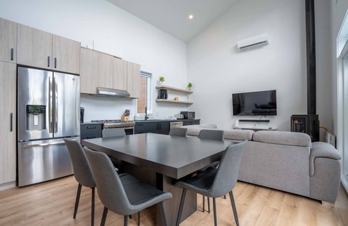 The chalet can comfortably accommodate up to 8 guests and features a bright, open-concept space, perfect for gathering with family or friends. The fully equipped kitchen makes meal preparation easy, while the living room with an indoor fireplace invites you to relax after a day of activities.